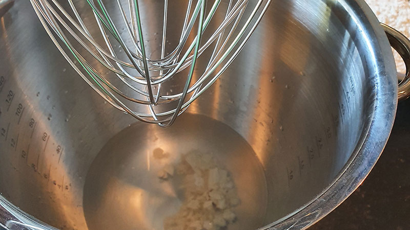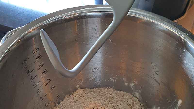 Versez l’eau dans la cuve du robot de cuisine et déversez-y la levure. Pesez la farine et la matière grasse de manière précise et incorporez-les. Enfin, ajoutez le sel en dernier. Si vous trouvez cela trop compliqué, optez pour un mix à pain prêt à l’emploi où il vous suffit d’ajouter de l’eau. Laissez le robot pétrir le mélange pendant 15 minutes jusqu’à obtention d’une pâte homogène.