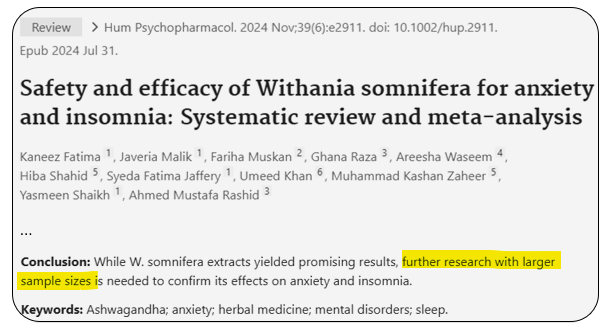 Pour le dire autrement : il est possible que l’extrait concentré d’Ashwagandha ait des effets bénéfiques sur le stress, l’anxiété et d’autre choses. Mais il est aussi possible que ce ne soit pas le cas. Des recherches plus sérieuses doivent le démontrer.