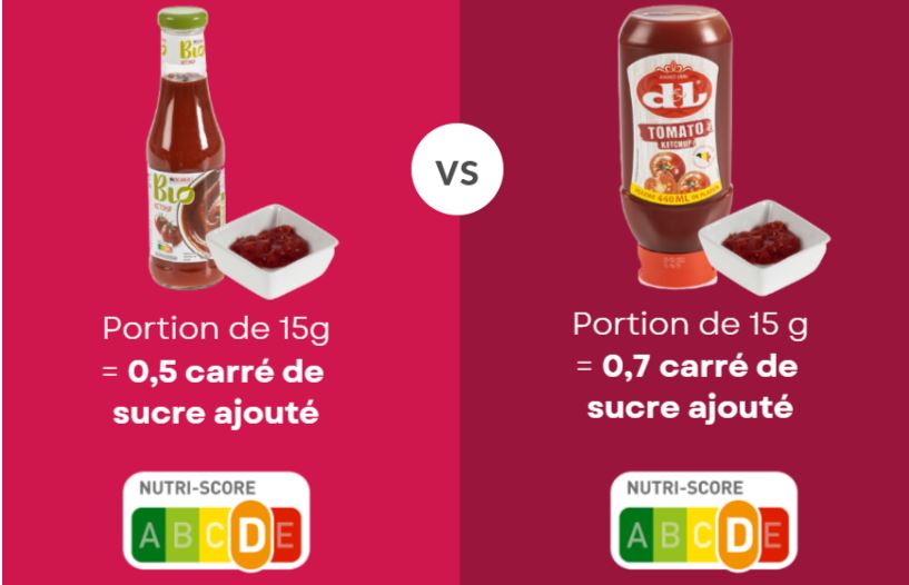 - Lucas, qui ne peut cacher son amour débordant pour le ketchup dont il noie tous ses plats, est un autre cas d'école assez fréquent. On ne s'en rend pas toujours compte, mais beaucoup de sauces de type dressing sont sucrées. Oui, même les vinaigrettes ! Du sucre qui ne vient pas des tomates dans le cas du ketchup, mais qui est sciemment ajouté. Ce qui explique en partie le Nutri-Score qui affiche un D.