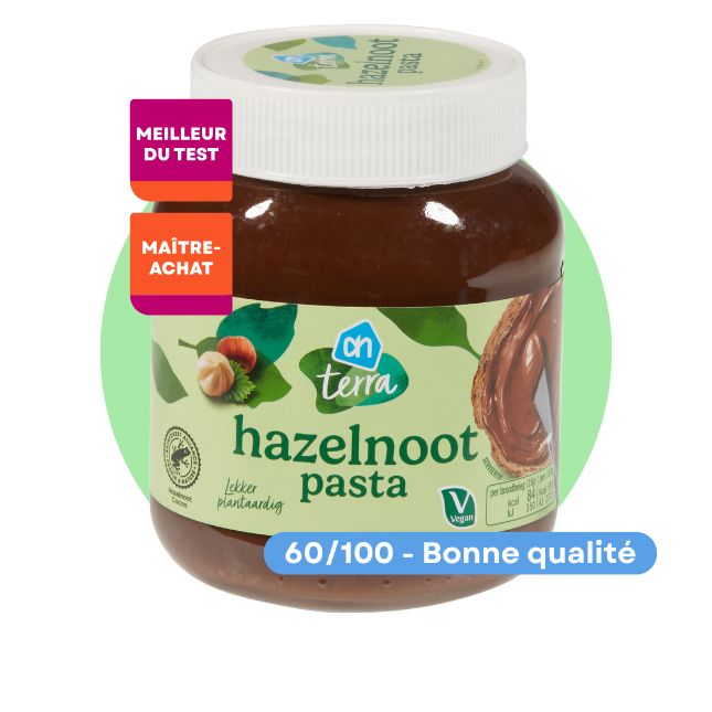Seules 4 pâtes à tartiner arrivent à passer la barre des 60/100 dans leur note finale. Il s’agit, à chaque fois, de marques de distributeurs. 3 d’entre elles obtiennent un label (Meilleur du Test, Maître achat, voire les 2).