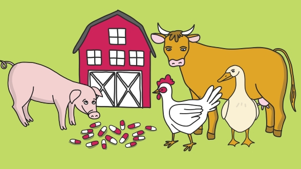 Dans nos contrées, il est commun d’administrer des antibiotiques aux animaux d’élevage comme les bœufs, les porcs et les poulets, parfois même s’ils sont en bonne santé.