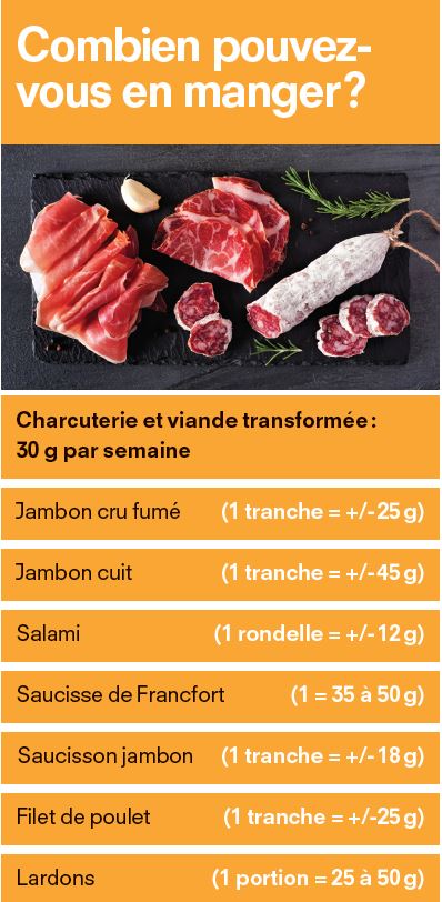 Le danger potentiel des nitrates et des nitrites vient se greffer à d’autres facteurs de risque - déjà connus de la population et parfois bien pires pour la santé -, comme le tabagisme, l’obésité, la sédentarité, l’abus d'alcool, le déficit en céréales complètes, etc. Bannir la charcuterie ne suffit donc pas. Il faut aussi, par exemple, faciliter la compréhension, pour le consommateur, de notions 'techniques' comme « viande transformée », « produits de viande », « préparations de viande », etc., définitions qui répondent à des recommandations nutritionnelles différentes, et qui permettent par ailleurs de déterminer si ces produits contiennent ou non des additifs de type 'nitrites' (cf. notre tableau).
