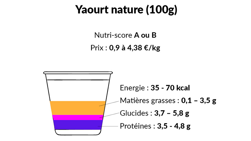Pour rappel, le Nutri-Score permet de voir en un coup d’œil rapide si l’on fait un choix responsable d'un point de vue nutritionnel. Les produits laitiers natures affichant un Nutri-Score A ou B constituent généralement de bon choix : ils comprennent les produits contenant peu de matières grasses et/ou beaucoup de protéines. Un produit portant un label C contient plus de matières grasses et moins de protéines. Plutôt considéré comme un dessert, il n’est pas conseillé pour une consommation quotidienne.