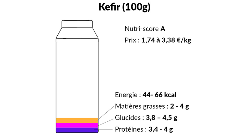 Sa composition nutritionnelle s’apparente à celle d’un yaourt nature avec un peu moins de sucre, car le lactose présent dans le lait est en grande partie transformé en acide lactique.
