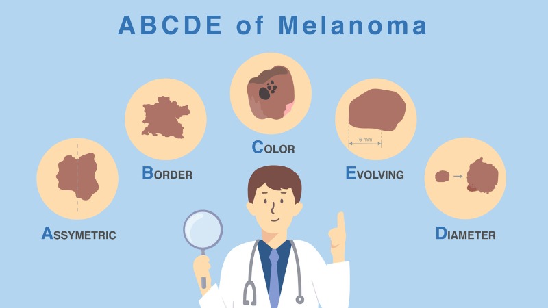 Les critères ABCDE constituent un guide utile pour reconnaître les signes de cancer de la peau. Les taches ayant une forme asymétrique, des bords irréguliers, des différences de couleur ou un diamètre de 6 mm ou plus, ou encore les taches de naissance qui grandissent ou évoluent avec le temps, doivent constituer un signal d'alarme.