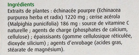 D’après le fabricant, un comprimé d’Echinaforce forte + Vitamine C vous apporterait 65 % de l’apport journalier recommandé en vitamine C (soit 60 mg). Cependant, il est assez simple et peu contraignant de vous procurer de la vitamine C via votre alimentation.