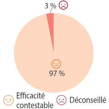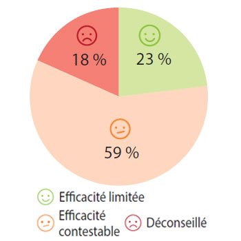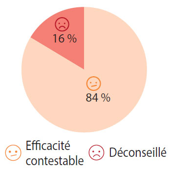 - Médicaments dont l’efficacité n’a pas été démontrée ou qui est sérieusement remise en question.