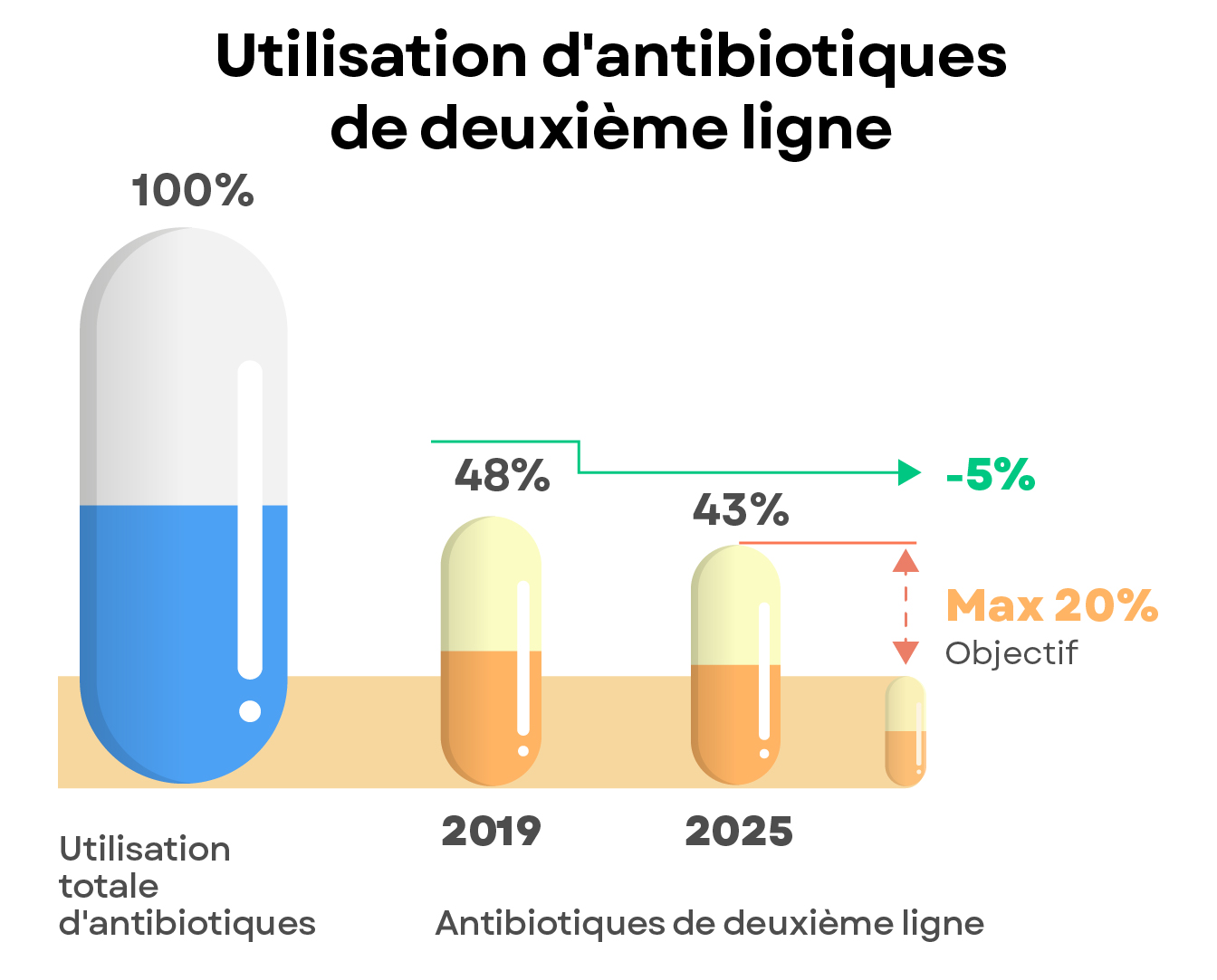 Même constat pour l’usage des antibiotiques de seconde ligne, prescrits lorsque le traitement standard ne suffit pas.