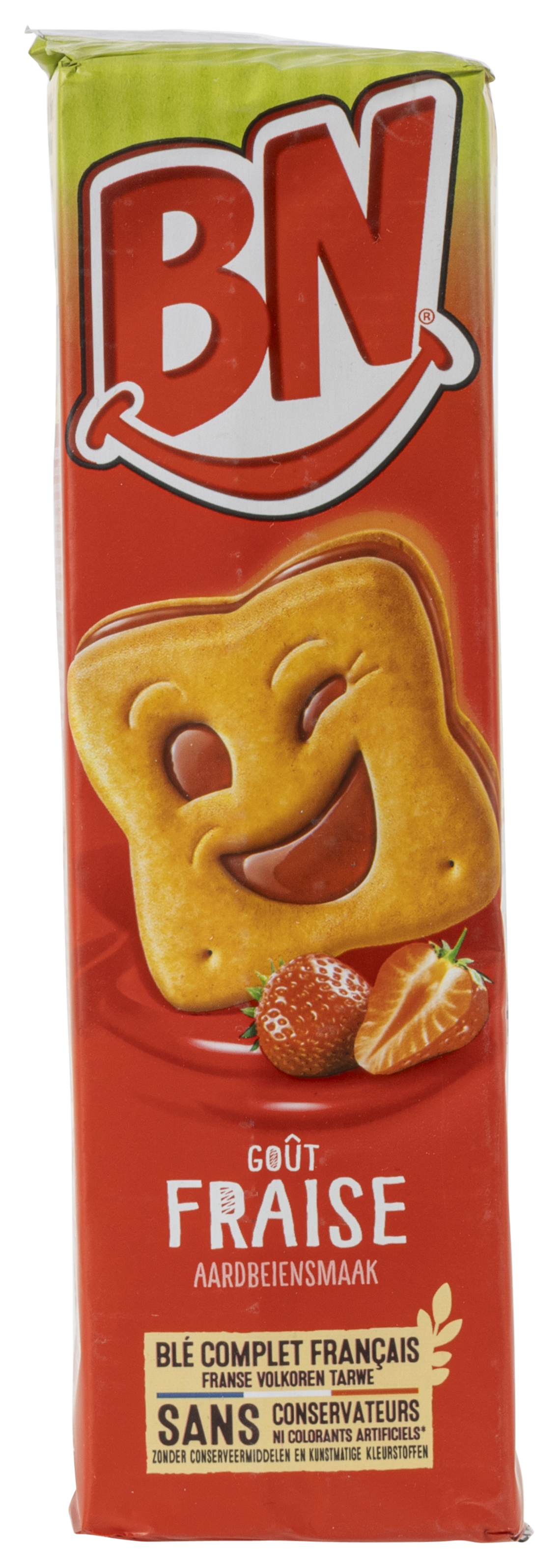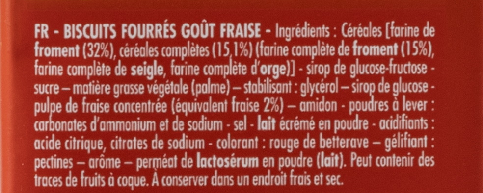 Sur l'emballage des biscuits aux fraises de BN, la mention "céréales complètes" nous fait croire que les biscuits sont composés en grande partie de ces céréales. En réalité, seuls 15 % des céréales sont des céréales complètes. C'est beaucoup trop peu pour se permettre une telle affirmation. Et pourtant, le fabricant est autorisé à faire de telles déclarations, car il n'existe aucun cadre juridique.