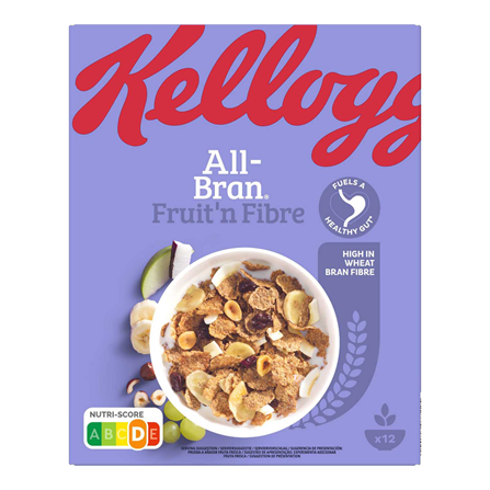 Les produits Kellogg’s All-Bran Fruit’n Fibre et Kellogg's all bran Fibre plus promettent des intestins en bonne santé. C’est du moins ce que laisse entendre la mention “fuels a healthy gut” accompagné d’un dessin d’estomac entouré d’un cœur.