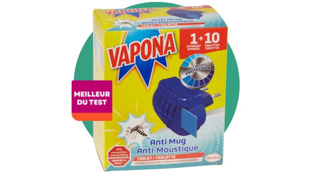 - Les produits qui empêchaient plus de 60 % des moustiques de pénétrer dans la pièce : deux produits rentrent dans cette catégorie, à savoir Vapona tablette et Baygon. Ils obtiennent 3,5/5.