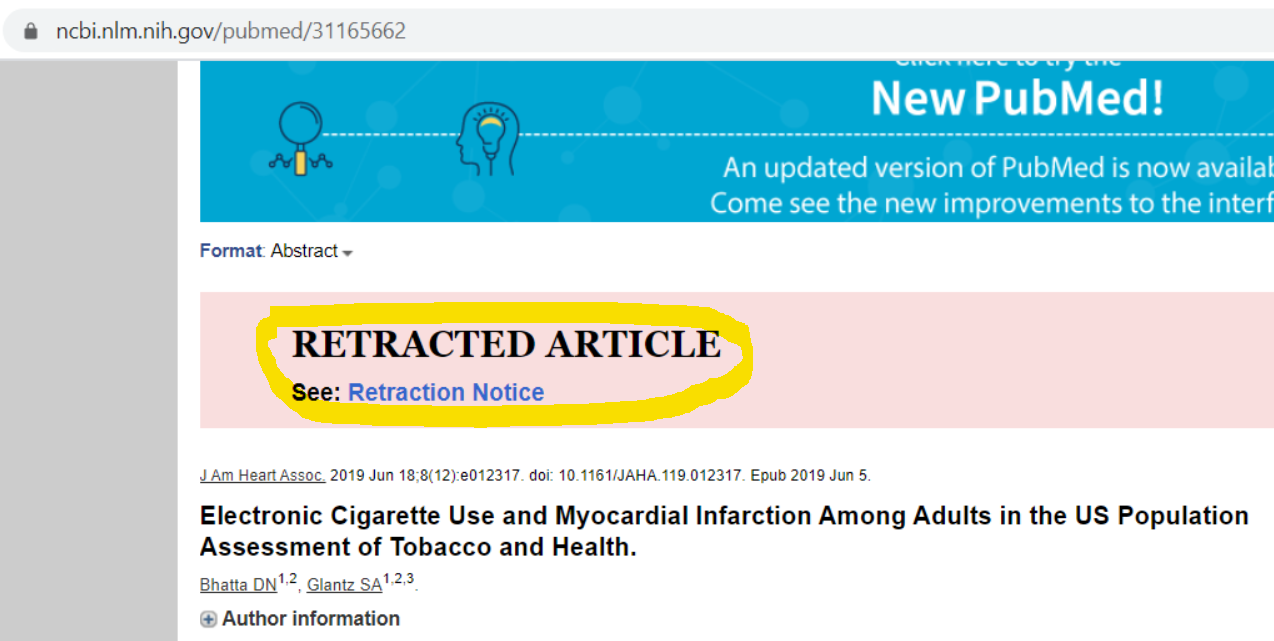 Vérifiez toujours si l’étude mentionnée n’a pas été retirée (« retracted ») en raison de manquements trop importants. Sur Pubmed, vous pouvez voir apparaître une « Retraction notice ».