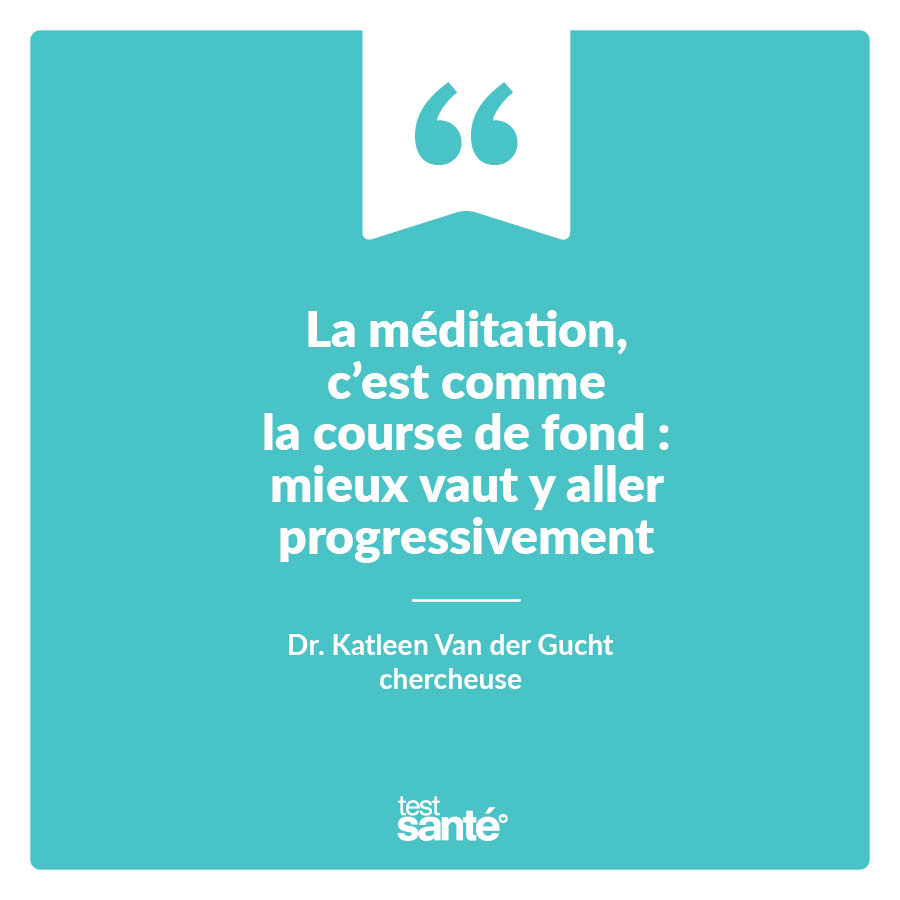 K. Van der Gucht: «Un tel chiffre n’a rien d’inquiétant. Ces 8 % sont comparables à la fréquence des effets secondaires lors d’autres interventions psychologiques. Mais cela peut se produire, effectivement. Raison de plus pour bien être encadré. Tournez-vous vers un formateur certifié et bien formé lui-même. Très important également : si vous souffrez de sérieux problèmes psychologiques, discutez d’abord avec un psychologue ou un médecin. Et n’exagérez pas. Il n’est pas judicieux de s’inscrire sans aucune expérience à une retraite silencieuse de plusieurs jours. La méditation, c’est comme la course de fond : mieux vaut y aller progressivement.»