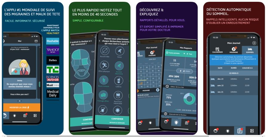 Les utilisateurs de l'application peuvent également partager les symptômes de migraine, la fréquence, l'intensité de la douleur et les traitements avec un médecin.